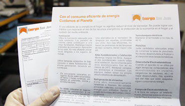 Bajo el título de: “Con el consumo eficiente de energía cuidamos el planeta”, el mensaje indica que “el uso eficiente de energía no significa reducir el nivel de bienestar. Se puede lograr con hábitos que mejorarán el uso de los recursos energéticos, la protección de la economía del hogar y el cuidado del medio ambiente”.