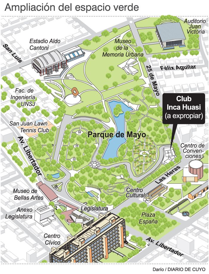 La Cámara de Diputados aprobó en su última sesión del jueves la expropiación del terreno que ocupa el club de básquetbol Inca Huasi en el Parque de Mayo, para lo cual el Gobierno provincial destinará 218,3 millones de pesos. Se trata de un predio de 3.525 m2, que serán destinados a ampliar la zona de espacios verdes del paseo y que forma parte del proyecto de remodelación integral del lugar. A cambio de la cesión de esa porción de tierra, el compromiso oficial es construir un nuevo estadio para la institución deportiva en las inmediaciones del Híper Libertad y recién cuando esté terminado, para lo que todavía no hay fecha, será el traslado. Desde la entidad dieron su conformidad al plan oficial.