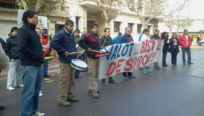 San Juan, 29 de julio.- Con bombas de estruendo, bombos, redoblantes, pancartas y un altavoz, los exempleados de Valot se hicieron sentir. Esta mañana y con este marco comenzó la conciliación obligatoria entre las autoridades de la empresa y el sindicato.