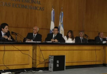 Ayer en la tarde 5 economistas locales dieron un panorama de cómo está la economía nacional y del mundo, en una conferencia organizada por el Consejo Profesional de Ciencias Económicas y el Ministerio de Producción de la provincia. El panel se denominó “Coyuntura Económica Nacional e Internacional”. Del Ministerio de Producción disertó la Jefa de Asesores del Ministerio, Iliana Brant, quién expuso los indicadores económicos de la provincia. También expusieron Eduardo Coria Lahoz, Américo Clavel; Sergio Rosa Donati y Federico Roses.