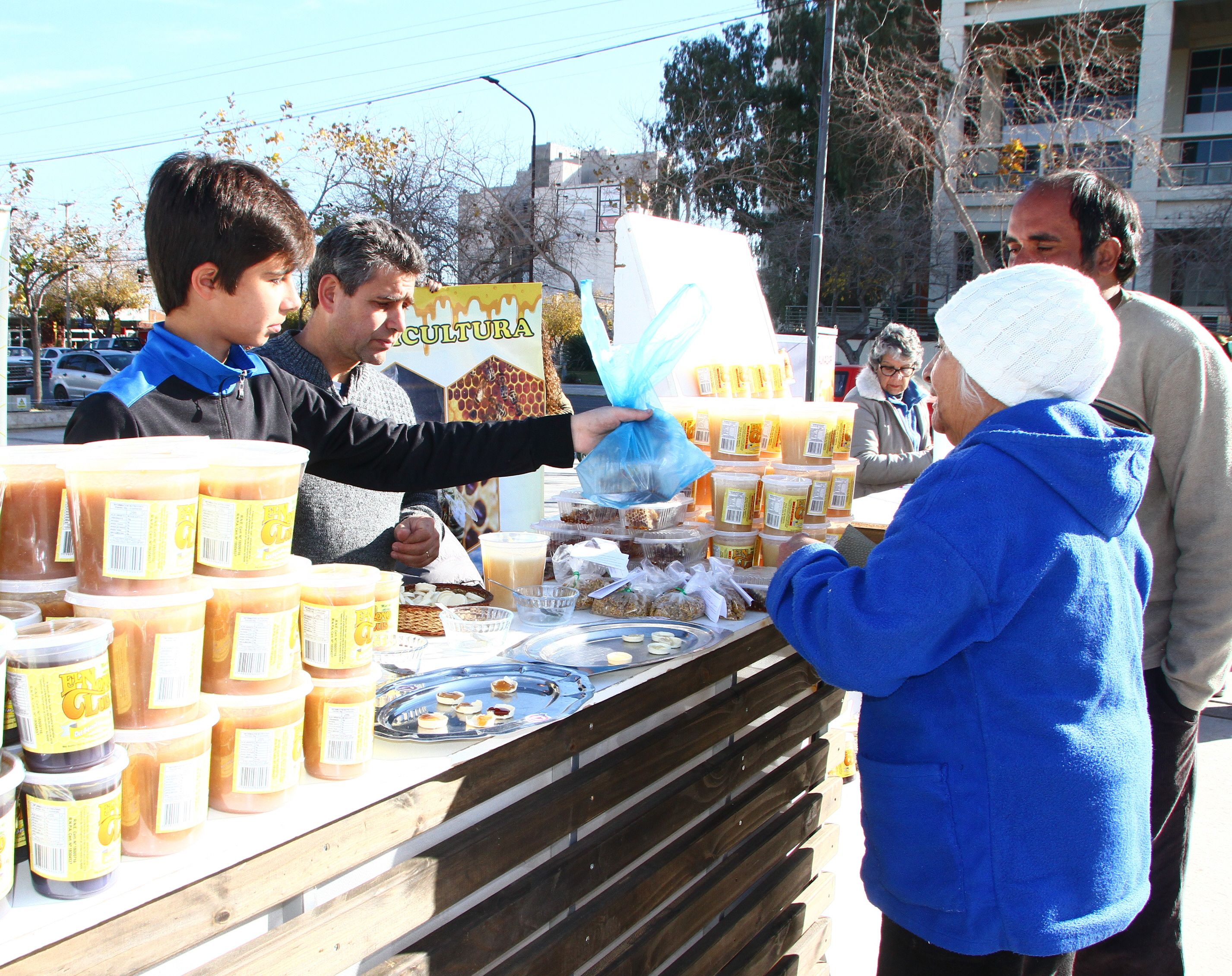 Agenda. El martes hubo exposición y degustación de productos de la colmena en la plaza del Bicentenario, con gran asistencia de público.