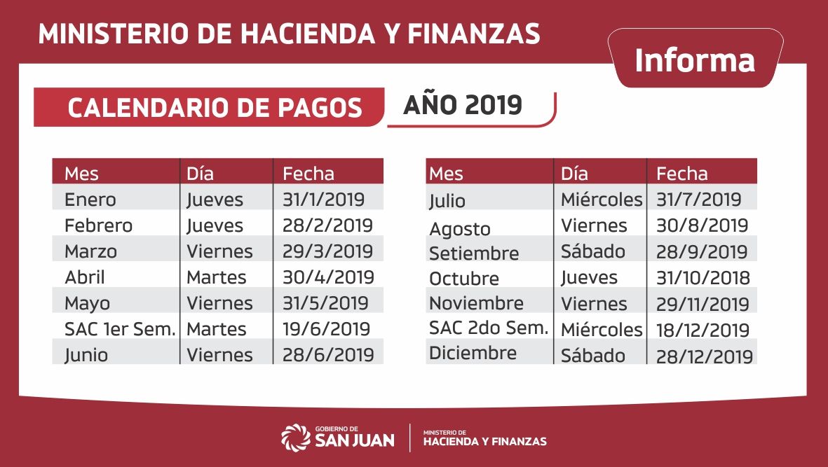 Por otra parte, las autoridades de Hacienda dieron a conocer el calendario de pago de haberes a los trabajadores estatales para todo el año: