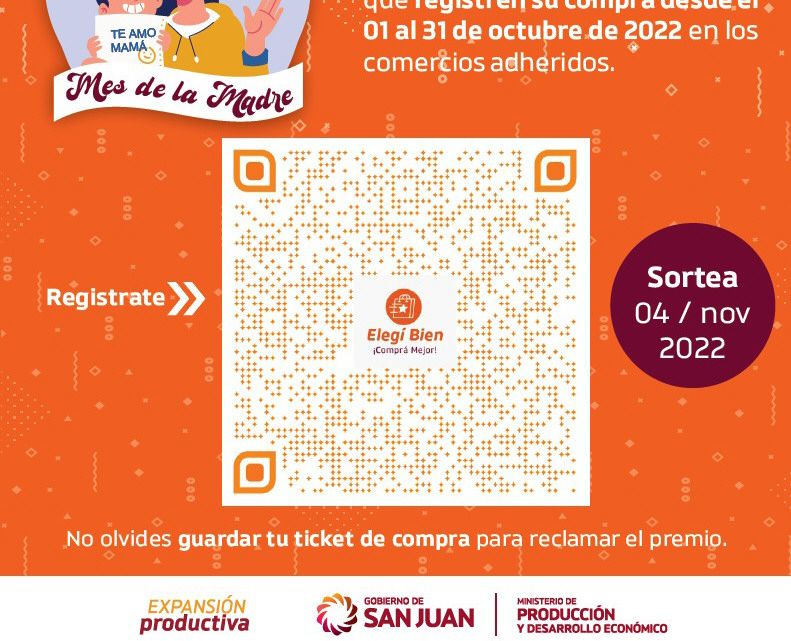 En el sector comercial el Día de la Madre ocupa el segundo lugar en el podio de ventas, después de las celebraciones de fin de año, que abarcan Navidad, Año Nuevo y Reyes, y hay muchas expectativas para este mes. Por eso cayó muy bien en el sector comercial sanjuanino la iniciativa del Ministerio de Producción, a través de la Secretaría de Industria y Comercio, de organizar junto al empresariado un megasorteo por el mes de las madres, que repartirá televisores, bicicletas y hasta carros con mercadería, entre otros numerosos e interesantes premios. El único requisito para participar será haber realizado una compra, desde $1.000 durante todo el mes de octubre, escanear el código QR exhibido en los locales participantes y cargar los datos del ticket. El sorteo se realizará el próximo 4 de noviembre y también entregará premios a los comerciantes participantes. Por ahora hay 170 comercios que participan y se sortearan en total 33 premios. "Esta actividad es muy buena, estamos muy contentos de que se realice porque va a atraer mucha gente al comercio. Y en los departamentos también será positiva, sobre todo en los comercios más vulnerables", opinó Hermes Rodríguez, secretario de la Cámara de Comercio de San Juan. ""Nuestros socios han adherido al programa oficial y estarán identificados con un folleto del Ministerio de Producción. Es una muy buena idea, porque incentiva las ventas y a partir de un ticket bajo. Mientras más compren, más pueden participar los sanjuaninos", dijo Marcelo Quiroga, desde la Cámara de Comerciantes Unidos.