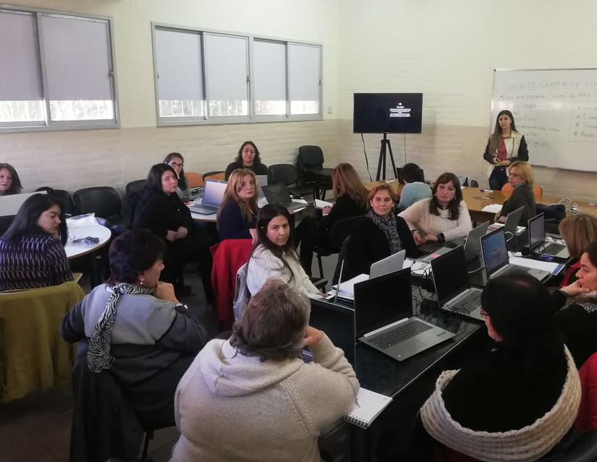 En el marco del programa Mujeres TEC, integrantes de la Asociación de Amas de Casa del País-San Juan y de la Cámara de la Mediana Empresa (CAME) comenzaron el curso de Community Manager, que brinda conocimientos básicos sobre gestión de redes sociales para uso comercial/empresarial.