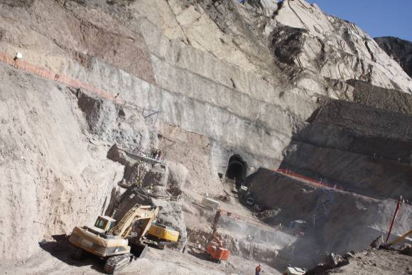 El gobernador de la provincia José Luis Gioja dijo “tenemos el 33% de la única presa hidroeléctrica que se está construyendo en a argentina con 758 trabajadores directos”. La obra comenzó en el año 2010 y hace nueve meses se realizó uno de los eventos más importantes en la construcción de la represa, el desvió del río. Esto permitió dejar el espacio físico para iniciar la construcción del paredón.