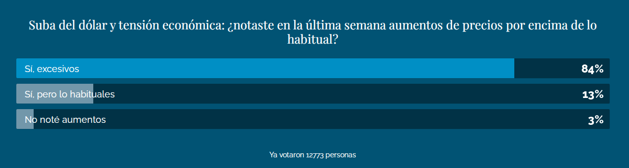 "Suba del dólar y tensión económica: ¿notaste en la última semana aumentos de precios por encima de lo habitual?", fue la consulta a la que respondieron 12.773 personas.