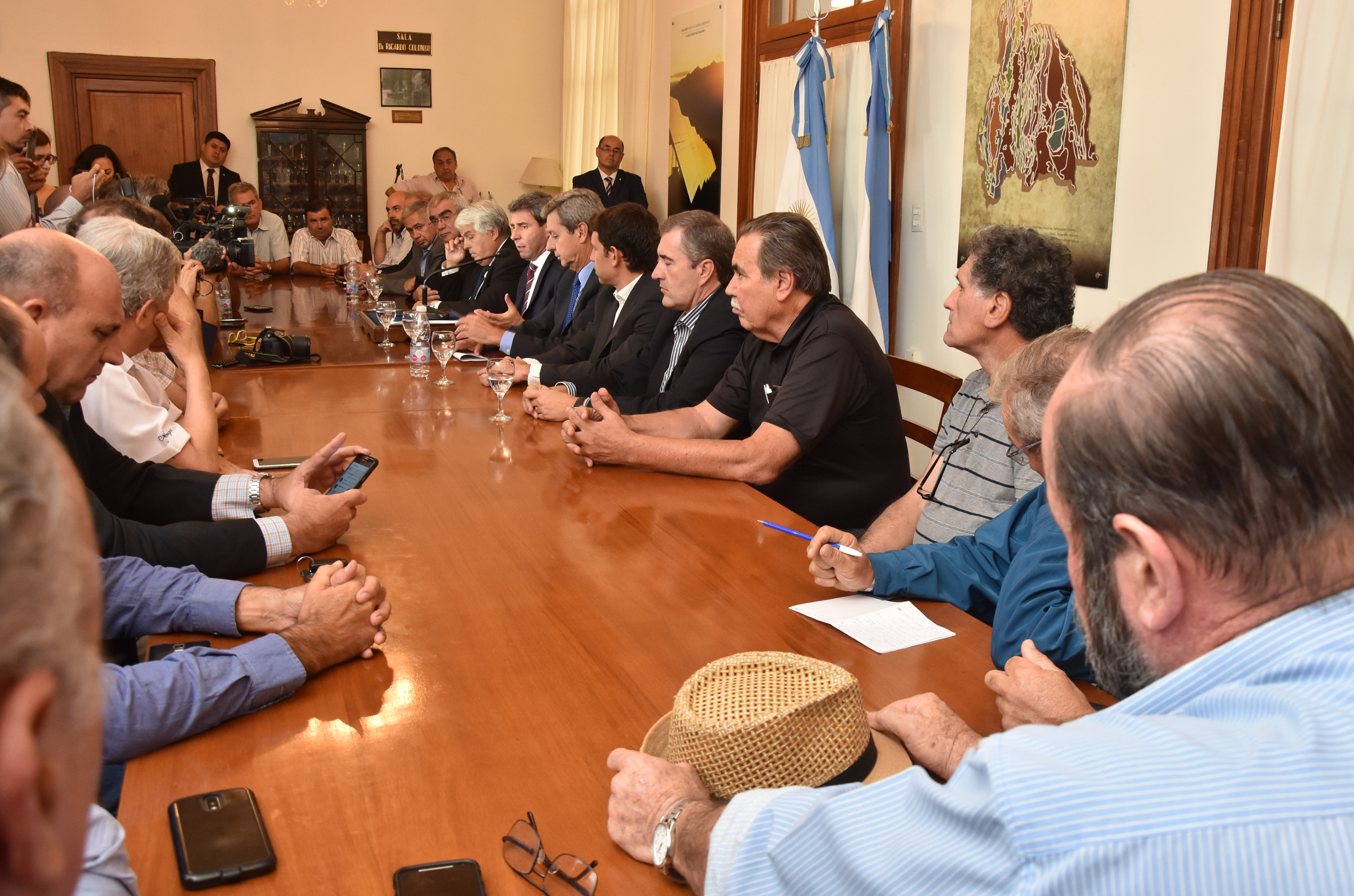 El gobernador Uñac anunció ayer un paquete de medidas de gran impacto para la vitivinicultura, que apunta a ayudar a viñateros y bodegueros a enfrentar la problemática de exceso de vinos y caída de precios en la vendimia 2019. Se trata de media docena de beneficios y programas que requerirán un esfuerzo fiscal de $600 millones. Entre ellas, la de mayor impacto es la devolución de retenciones a las exportaciones de vinos que hará el gobierno provincial ante la negativa de la gestión macrista, con el objetivo de impulsar la comercialización. También se anunció un operativo oficial de compra de uvas, bonos fiscales y créditos de cosecha a tasa cero. ‘’Vamos a seguir apostando a las actividades productivas, a quienes dedican su tiempo, esfuerzo y dinero a la generación de riqueza y de empleo’’, dijo Uñac, al tiempo que pidió dar un giro al modelo macrista de ajustes que está impactando en las economías regionales (ver aparte). El sector vitivinícola que estuvo representado por los referentes de las cámaras y entidades sanjuaninas consideró positivo el anuncio en su mayoría.