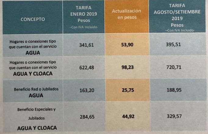 Como consecuencia, el cuadro tarifario quedó de la siguiente manera:
