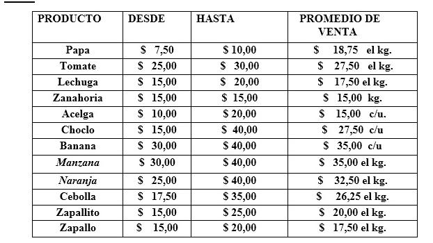 Por otra parte los precios se mantuvieron en tomate, papa, zapallo, zanahoria, choclo y banana.