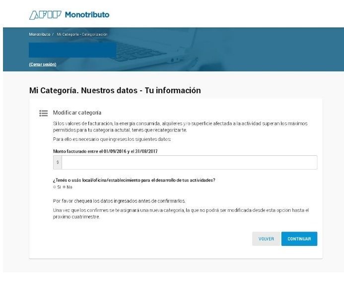 4- Aquí tendrás que informar el monto facturado entre las fechas que el sistema te indica. Si no utilizás un local/oficina/establecimiento para el desarrollo de tus actividades, marcá “No” y luego presioná continuar