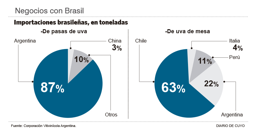 Lo que juega a favor de provincias productoras como San Juan y Mendoza, es que el vino fraccionado y a granel puede ingresar a Brasil con arancel 0%, al igual que Chile. El jugo concentrado de uva o mosto también tienen arancel 0%, al igual que las pasas, siendo que las de Chile pagan 7,2% y las del resto del mundo 10%. La uva en fresco, por su parte, también tiene arancel 0% como las chilenas para ingresar a Brasil.
