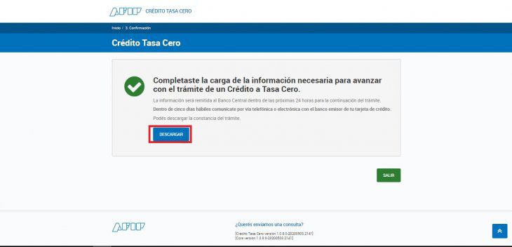 -Una vez que toda la información fue ingresada, la AFIP emitirá un Certificado de Tramitación y remitirá los datos al Banco Central para que los distribuya entre los bancos seleccionados por los monotributistas y autónomos. Cada banco se contactará con quienes iniciaron el procedimiento para avanzar en la tramitación del Crédito a Tasa Cero.