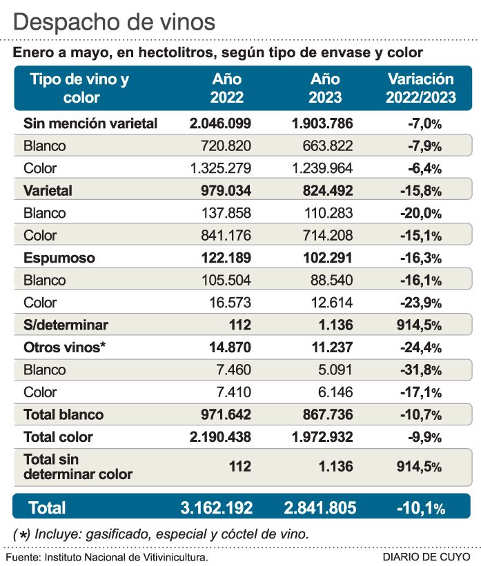 El problema es que con esos aumentos el consumo de vinos en el mercado interno viene en picada en los últimos meses. Al punto que, según los últimos datos disponibles dados a conocer por el Instituto Nacional de Vitivinicultura (INV), en los primeros 5 meses del año el consumo cayó el 10,1% y no se ven indicios de que esa situación se vaya a revertir.
