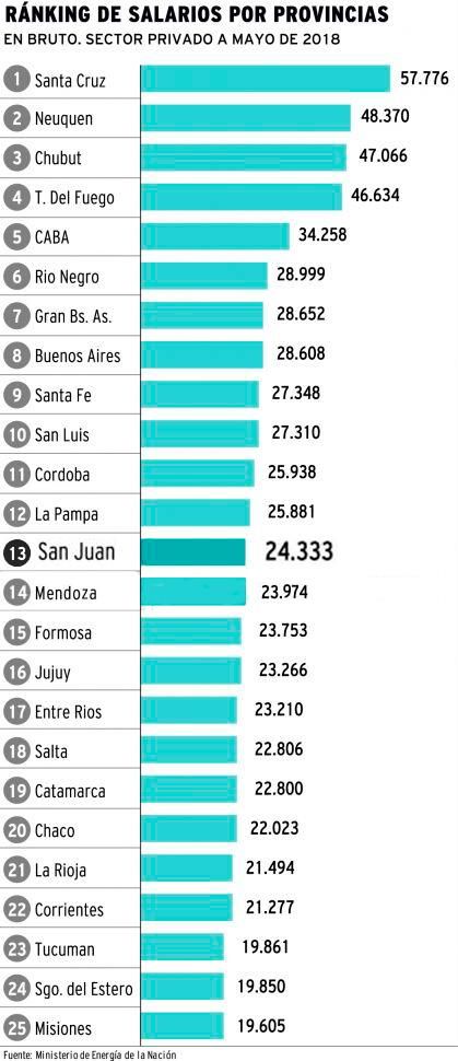 En el ranking nacional (compuesto por 25 lugares), San Juan se ubica en el puesto 13 en orden decreciente. Mientras que, Mendoza está justo por debajo ($23.974) y San Luis, ocupa el décimo lugar ($27.310).