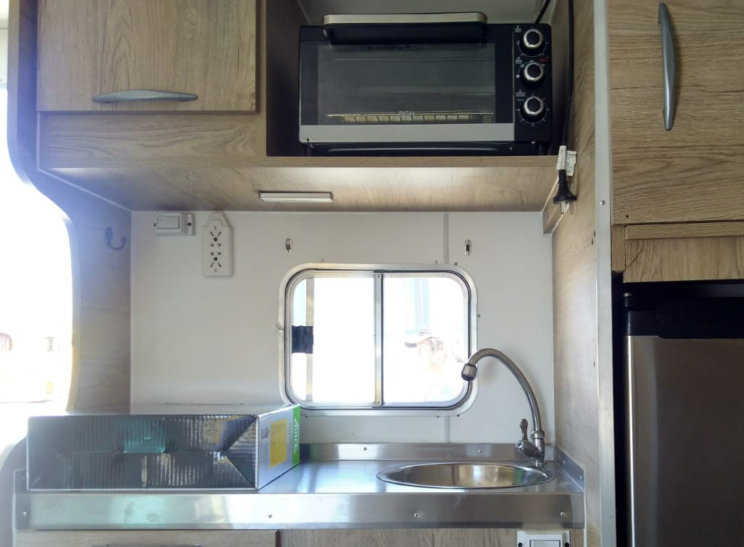 Las casas rodantes, que son de tiro, es decir que deben ser desplazadas con ayuda de otro vehículo, son para 4 ó 6 personas. Cuentan con baño químico, ducha, heladera, equipo de aire acondicionado y para cocinar están las opciones de un anafe o de un hornito eléctrico.