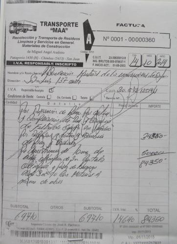 Enterado por la publicación de este diario, Audisio aportó los originales de ambas facturas que aparecen anuladas. Según contó, no hizo los trabajos y para no tener que pagar impuestos, las descartó.