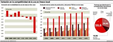 Si bien Gimenez admitió que la devaluación y un mejor tipo de cambio impuesto por el gobierno de Macri en diciembre los favoreció, este año el mercado mundial de la uva es adverso porque Perú tiene grandes volúmenes y no tiene aranceles para exportar a Europa (la Comunidad Europea aplica 11% a Argentina), Chile tiene grandes volúmenes y este país no es formador de precios. Turcuman agregó que en Europa, el principal comprador de la uva local cayó el consumo y tiene mucha oferta, y Rusia con una nueva devaluación, paga precios bajos. ‘El ajuste de divisas y eliminación de retenciones vino tarde para el sector. Vamos a exportar muy poco este año, apenas un 10% de los 10.000 pallets que solíamos exportar. La situación afuera esta muy complicada’’, agregó por su lado el exportador Enrique Ahún.