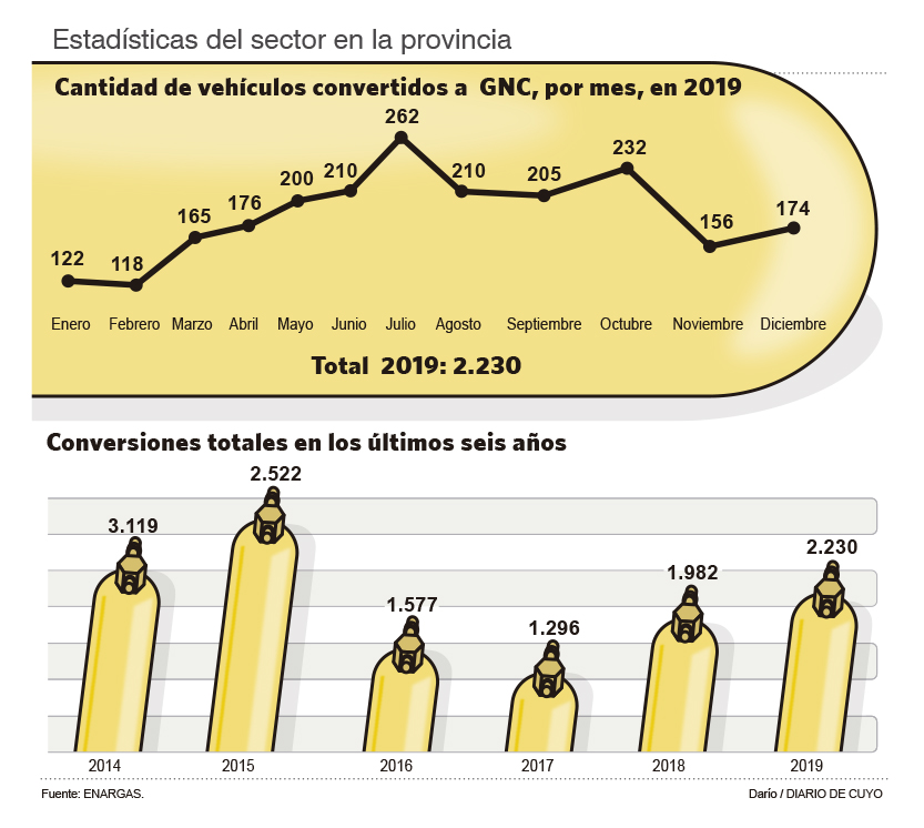 San Juan es una de las provincias con el valor del m3 de Gas Natural Comprimido (GNC) entre los más baratos del país, en el sexto lugar, y ha sido uno de los motivos para que el año pasado se hayan registrado 2.230 conversiones de autos. Con esa cifra, el 2019 ha llegado a ser el mejor año de los últimos 4 en ese tipo de operaciones. El otro factor de crecimiento, según fuentes del sector, ha sido que desde las primarias de agosto los equipos no han registrado incrementos y se estabilizaron los precios.