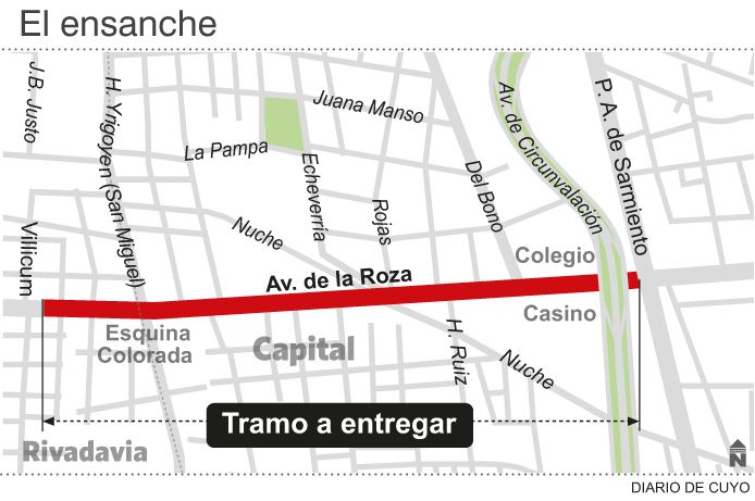 En la actualidad la constructora ya está con los detalles finales, porque toda la traza de la avenida, desde Paula Albarracín de Sarmiento en dirección a Rivadavia, ya está habilitada al tránsito, aunque con precaución porque hay obreros trabajando en la zona. Por ejemplo están reemplazando algunas losas de hormigón, que sufrieron deformaciones o fisuras. También el personal está terminando de colocar la cartelería horizontal, que es la que va pintada sobre la calzada, y la que va montada en parantes. Y están completando la forestación con ejemplares de tipas blancas y la colocación de champas de césped. También están concluyendo las veredas y las acequias, por ejemplo en la zona de la Esquina Colorada.