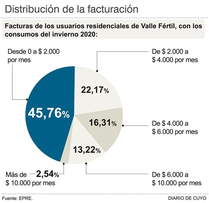 Mientras vecinos de Valle Fértil están convocando a una protesta para reclamar por los aumentos recibidos en la boleta de electricidad que envía Energía San Juan, desde el Ente Provincial Regulador de la Electricidad (EPRE) salieron al cruce del reclamo, al informar que apenas un 16% de los usuarios de aquel departamento pagan por encima de los 6.000 pesos. De ese grupo, sólo el 2,5% recibe facturas superiores a los 10.000 pesos. La información contrasta con lo que denuncian un grupo de ciudadanos que están juntando firmas y convocando a una manifestación en la plaza departamental, junto con un "apagón simbólico" para el próximo 2 de noviembre, en repudio a lo que denominan "tarifazos". Ellos dicen que a los vecinos del departamento les están llegando boletas muy caras, duplicando lo que venían pagando y cuyos valores rondan los 10.000 pesos. Un caso es el de Alejandra Cortes, una de las organizadoras de la protesta del próximo lunes quien contó que está pagando más por el consumo de luz que por el alquiler de su vivienda. La vecina manifestó que venía pagando en promedio 3.500 pesos por el servicio eléctrico y que desde agosto sus boletas rondan entre 12.800 y 15.500 pesos. Otro usuario vallisto mostró una boleta de luz por 8.000 pesos, de una casa que había construido recientemente pero que todavía no habita; y, una mujer del barrio UDAP 1, recibió una boleta de 10.000 pesos de una casa que le entregaron hace tres meses pero que recién comenzó a habitar hace una semana, con lo cual no se justifica un monto tan alto.
