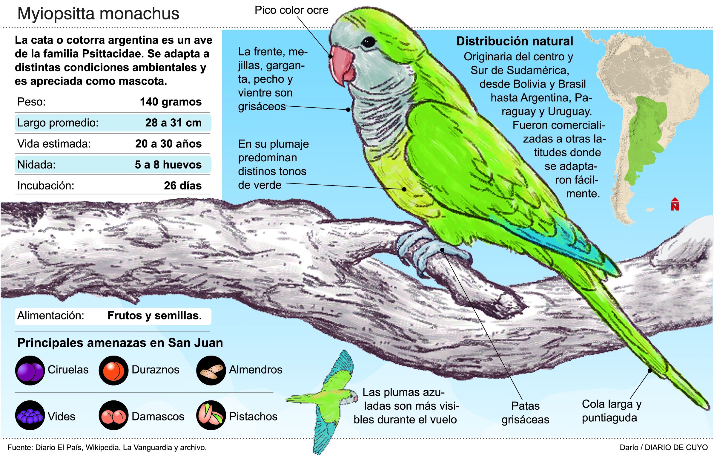 Los productores sanjuaninos están preocupados por la proliferación de catas, que se han convertido en una plaga que arrasa con todo lo que encuentra a su paso con el objetivo de alimentarse. Pistachos, almendros, durazneros, ciruelos, damascos y uvas, todo lo que sea potencial fuente de alimentos es devorado por estas aves, provocando un gran daño a la producción agrícola. Al punto que desde la Dirección de Conservación y Áreas Protegidas están trabajando en un plan con medidas disuasivas para evitar un perjuicio mayor en el campo.