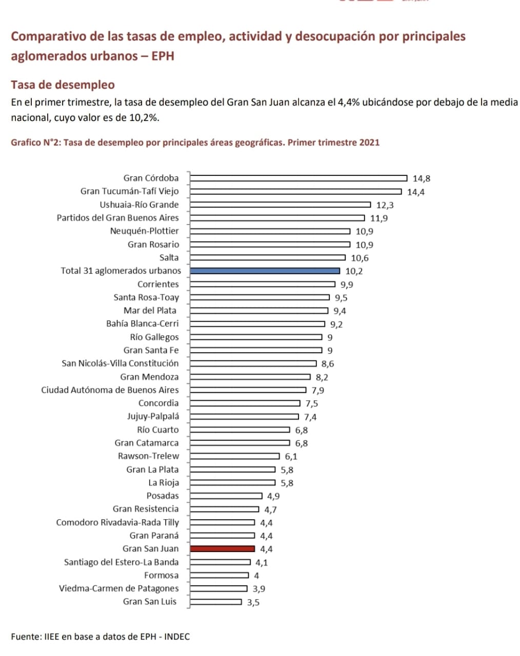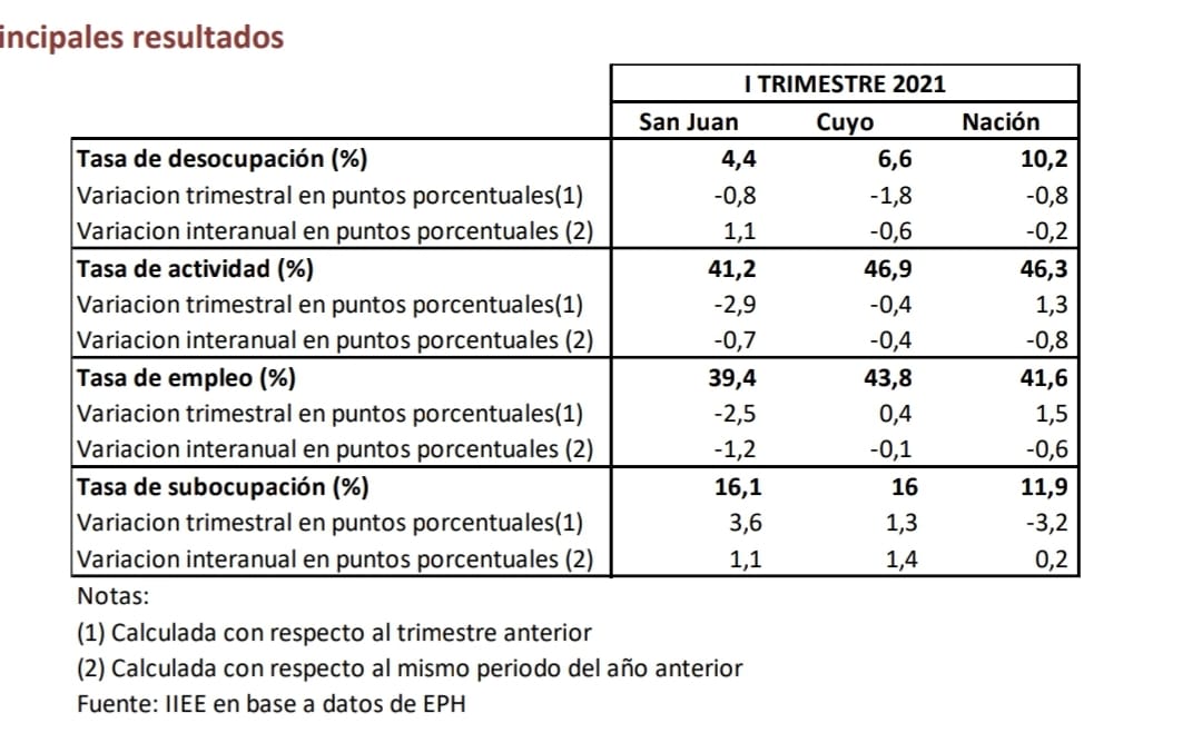 La ministra de Hacienda y Finanzas de la provincia, Marisa López indicó que “el índice arrojó 4,4%, notablemente inferior al trimestre anterior, que corresponde al 31 de diciembre del 2020, oportunidad en a que se midió en 5,2%" y que "esto muestra una recuperación en la actividad económica y en el nivel de empleo en San Juan”.