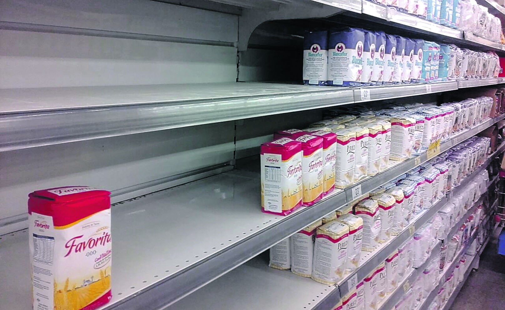 Por el tema de las harinas, una importante cadena nacional tenía hasta ayer faltantes y el tema se podía ver en sus góndolas, que tenían una imagen que graficaba el panorama. El encargado del negocio dijo que desde hace días tenía problemas de abastecimiento, aunque no había una razón climática o de falta de producción, sino que más bien se debía a guardar la mercadería hasta ver qué sucede con los precios.