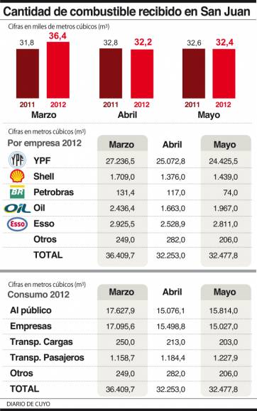 En el mes de marzo se comercializó en la provincia 36.409 m3 de combustible, un 12,5% más que el mismo mes del 2011. De ese total, el 75% de los volúmenes que se negocian en la provincia, pertenecen a YPF, siendo determinante, dicha firma, en el mercado local.