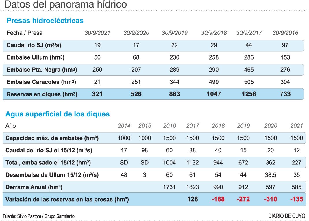 13 Son los acuíferos con los que cuenta la provincia, de los cuales 6 están ubicados sobre la cuenca del río San Juan. El nivel de esos reservorios es el que está bajando.