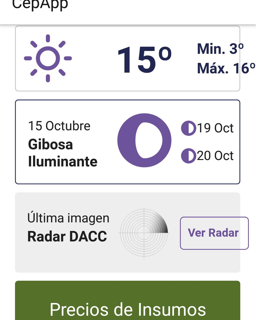 Además, CepApp utiliza la ubicación del productor, a través del GPS del dispositivo, para brindar datos útiles en tiempo real y hacer un seguimiento intensivo de los distintos factores que pueden afectar la producción. Entre estas herramientas se destacan una sección de Clima, donde el productor puede consultar el pronóstico meteorológico para los próximos días así como analizar las principales variables ambientales, la presencia del Calendario Lunar, herramienta para la vitivinicultura bio-dinámica y las imágenes de radar de las zonas productivas. Según informaron desde Coviar, fue diseñada para garantizar el acceso a la información del viñatero, para realizar las inversiones en su finca al precio más bajo, para poder reducir costos y ser más competitivo. La aplicación ya se encuentra disponible en Play Store, bajo el nombre de CepApp y se busca ingresando "Bolsa de Comercio de Mendoza", donde se puede descargar de forma gratuita. Claro que en San Juan aún no funcionan los servicios que presta. Cuando eso ocurra, para acceder a la carga de actividades y costos se debe ingresar con el número de CUIT del productor y el número de viñedo registrado en el INV. La innovación contó con financiamiento de la Secretaría de Ciencia y Técnica de la Nación.