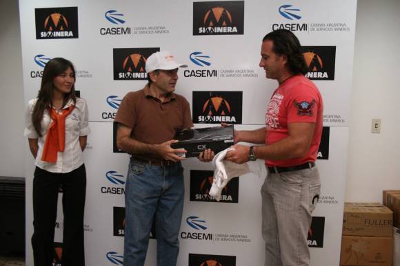 El señor Manuel Cardozo Molina resultó favorecido con el premio de un netbook en el Concurso "qué sabe usted de minería", organizado por la Facultad de Ingeniería de la Universidad Nacional de San Juan, en la pasada feria SIMINERA 2009. Ayer, el presidente de la Cámara Argentina de Servicios Mineros (CASEMI), Fabrizzio Benedetti entregó el premio al ganador.