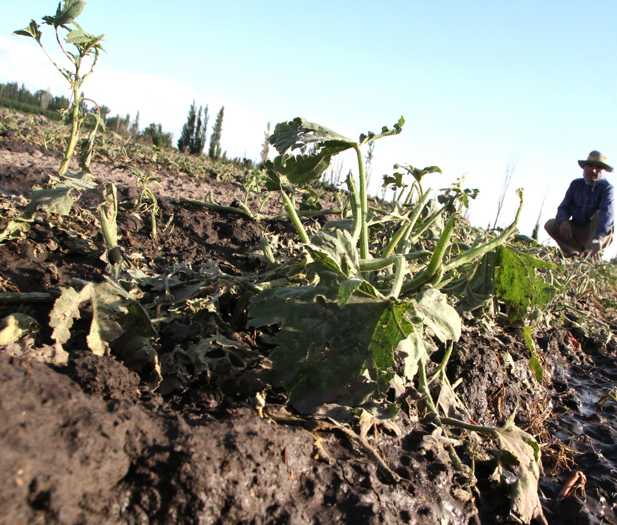 Daños en fincas de Rawson, causadas por el temporal de lluvia y granizo del 5 de diciembre del año pasado. Luego se produjeron dos tormentas más con daños. Una cuarta fue el domingo pasado, pero no afectó tanto la producción.