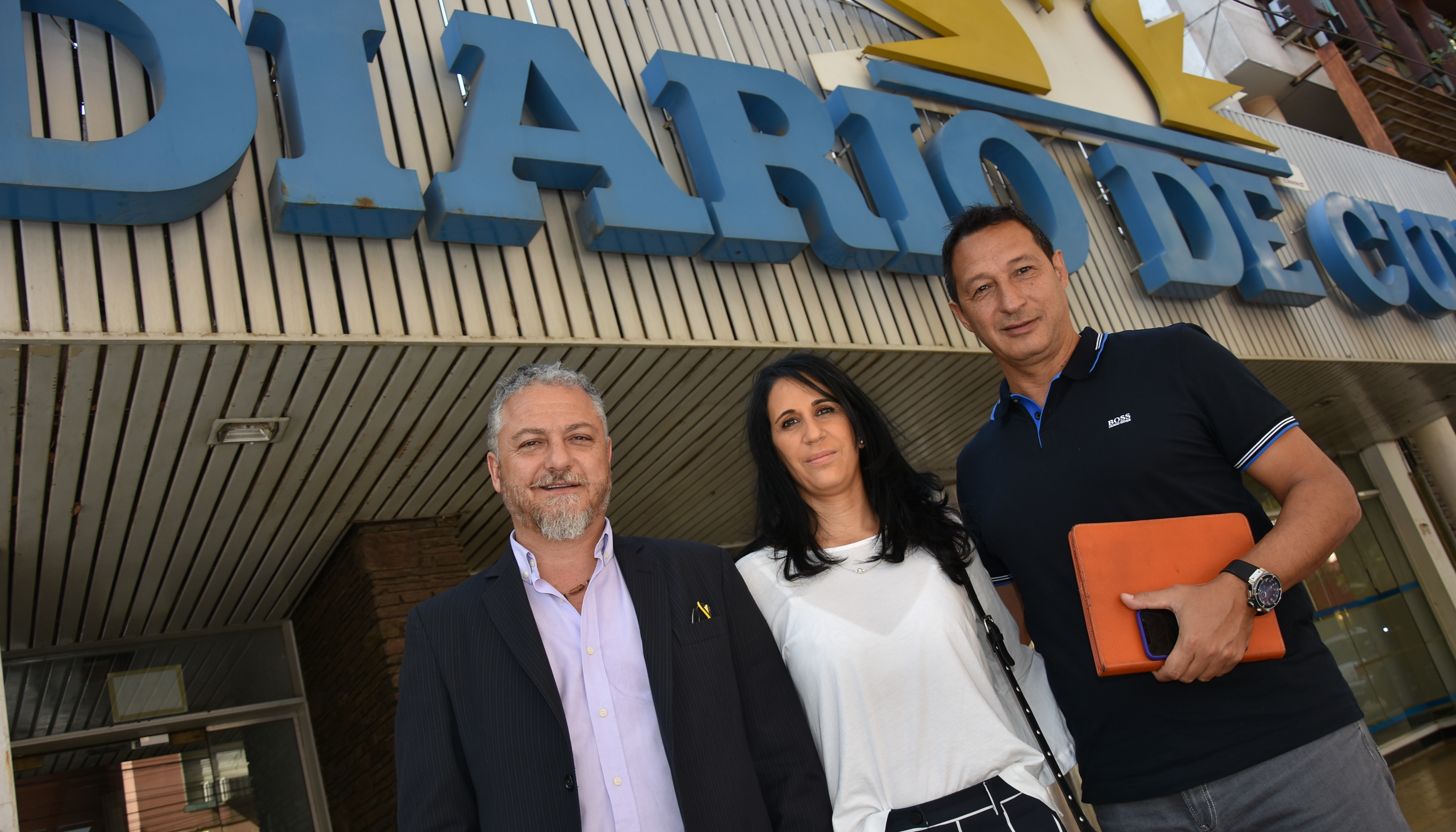 El titular de CECHA, Carlos Gold (a la izquierda de la foto) junto a la presidente de la Cámara de Combustibles de San Juan, Analia Salguero; y el vicepresidente de CECHA, Federico Ricci; en una recorrida por la ciudad. Desde ayer y hasta el domingo sesionan en Barreal, Calingasta. La ley de comercialización de hidrocarburos y las paritarias 2018, entre los temas de debate.