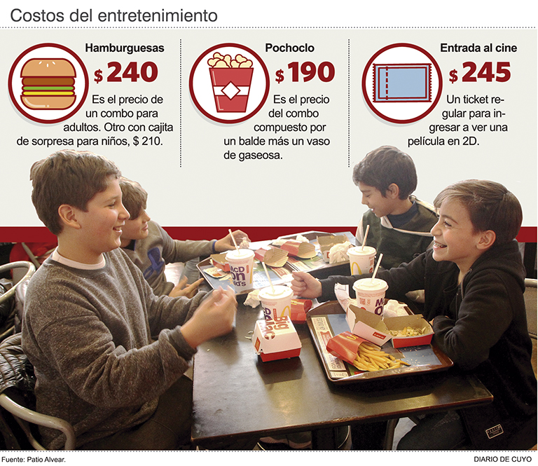 Empezaron las vacaciones, los chicos están con todas las energías y piden salir a divertirse y las familias empiezan a hacer cuentas para ver qué actividades pueden permitirse, considerando que este invierno los precios están mucho más caros. De acuerdo al relevamiento clásico que DIARIO DE CUYO realiza desde hace seis años, una salida al cine, con los pochoclos y luego una comida rápida con hamburguesas de una familia tipo con dos adultos y dos niños, cuesta este invierno 2.300 pesos. El combo aumentó un 53% respecto al invierno del 2018.