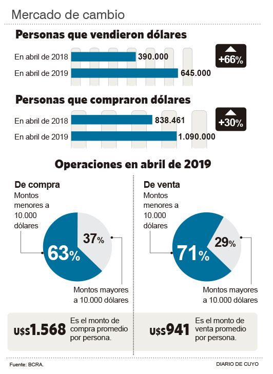 Un ahorrista local que el 2 de enero pasado compró mil dólares por la suma de $38.740 y los conservó hasta el 30 de abril se encontró con que tenía $45.800 en mano, según la cotización oficial del banco Nación en ambas fechas. Es decir que logró una ganancia de $7.060 o del 18,22% en lo que va del año, lo que implica que le ganó a la inflación: según el INDEC, en el primer cuatrimestre la inflación fue del 15,6%. Si en lugar de comprar dólares, hubiese hecho un plazo fijo en pesos, al 42% que estaban las tasas en enero (ahora rondan el 50%), habría ganado un 15,55% en el mismo plazo. Esas cuentas ayudan a entender por qué la actual crisis llevó a los ahorristas locales a dolarizarse este año. De acuerdo a un sondeo realizado en las Casas de Cambio que hay en San Juan -a las que generalmente acuden los ahorristas pequeños- y en las dos entidades bursátiles que operan en la provincia -destinadas a empresarios o productores que se animan a otros iniciativas- coinciden en que el sanjuanino que cuenta con ahorros los tiene mayoritariamente dolarizados.