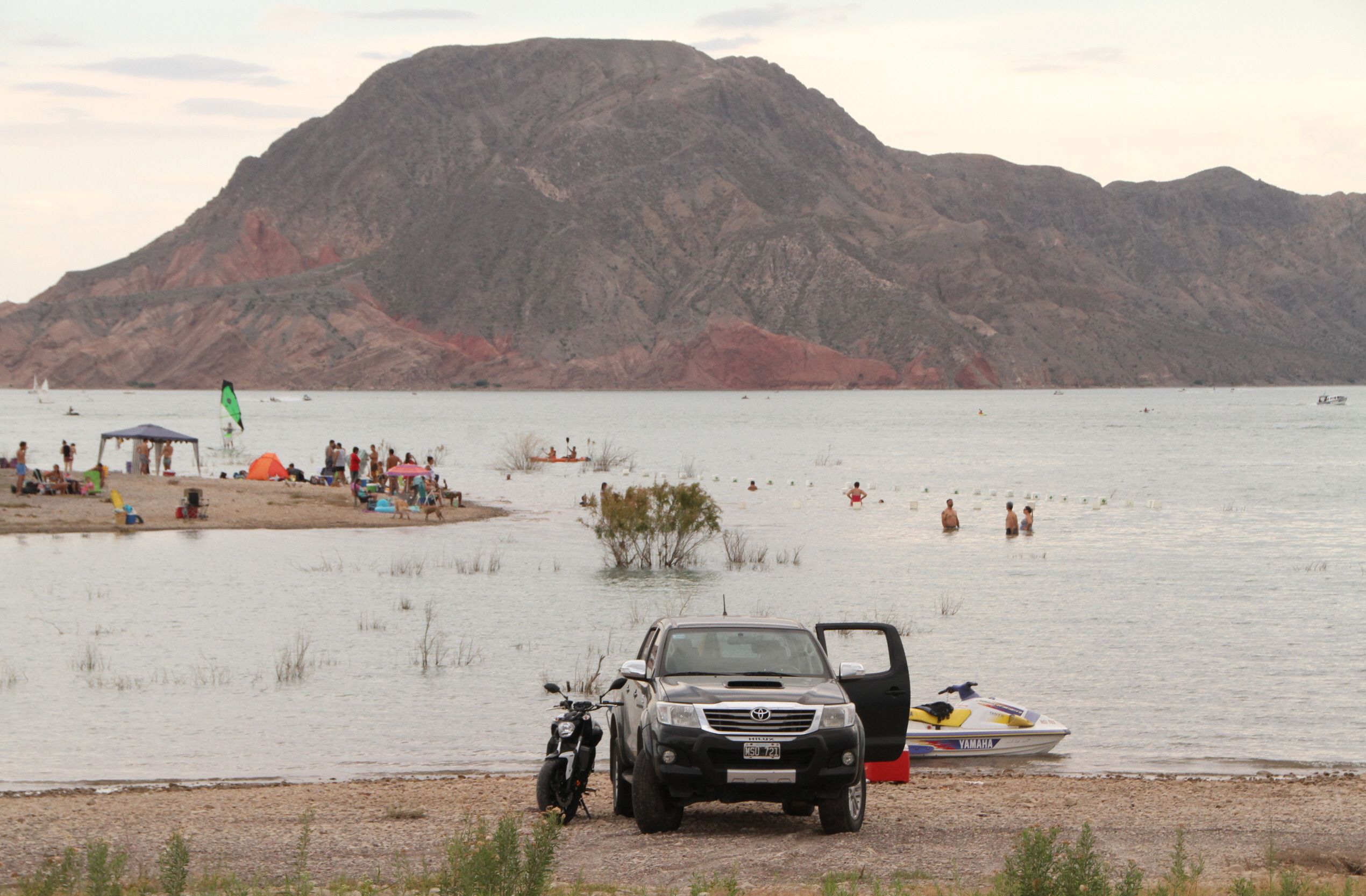 El Dique de Ullum en los últimos días de febrero. Este verano también tendrá mucha agua, al igual que Punta Negra, para preservar la actividad turística. Para regar sacarán agua del dique Los Caracoles, dicen en las Juntas de Riego.