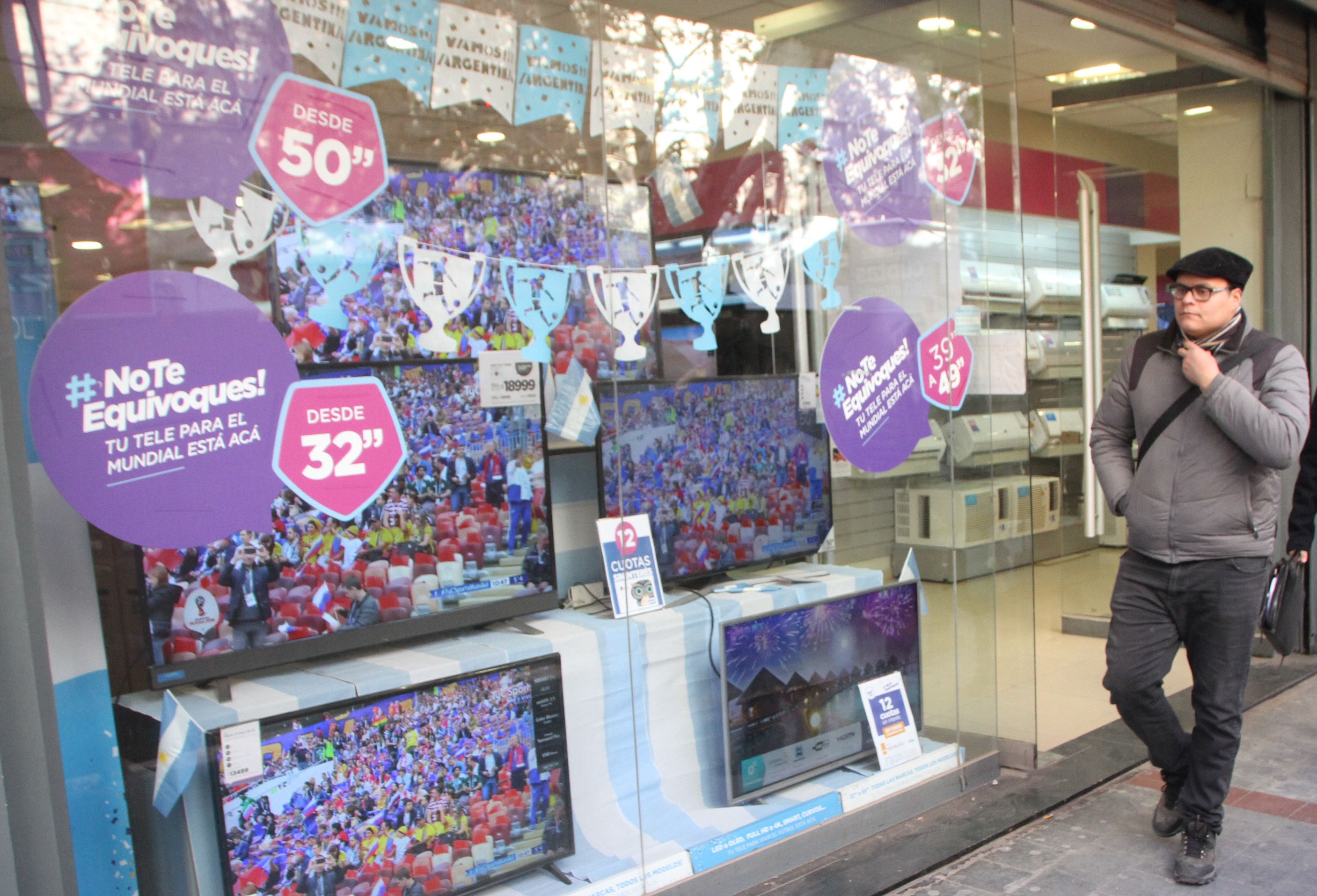La fiebre futbolera de los sanjuaninos hizo crecer con fuerza la venta de televisores, que aumentó hasta un 40% en lo que va de junio, en comparación con mayo pasado. La cuenta surge porque, en promedio, los negocios del rubro vendían cada uno 12 aparatos por semana y en lo que va de junio pasaron a comercializar 17 cada 7 días. El segmento de los más demandados se ubica en los de 50 pulgadas, según un relevamiento entre comerciantes del sector, y para tentar a los compradores hay ofertas por pago de contado y planes de financiación con tarjetas hasta en 24 cuotas sin interés.