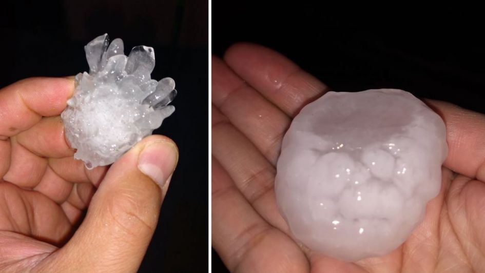 A través de las redes sociales, vecinos de Palmira, San Martín, Junín y Las Catitas compartieron imágenes del granizó de gran tamaño que había caído en sus hogares.