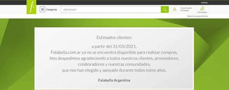 Falabella abandonó definitivamente sus operaciones en el país y desde el lunes ya no es posible hacer compras online, pese a que la empresa había asegurado que mantendría el negocio de comercio electrónico.