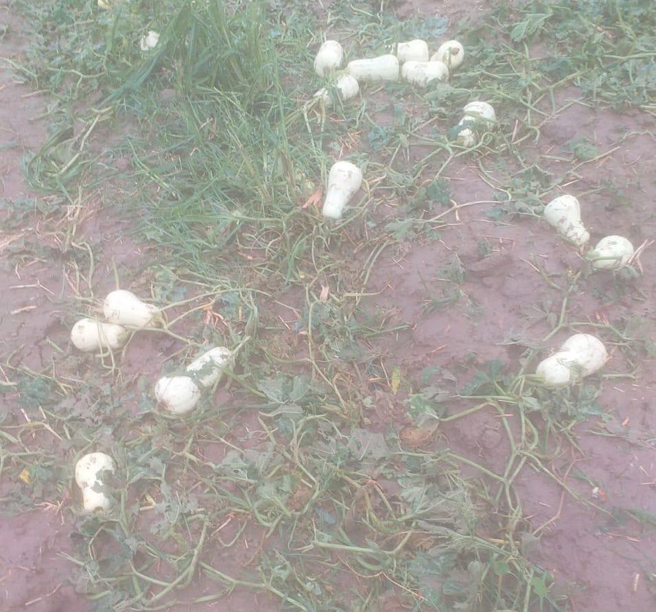 Zapallo. También este otro cultivo fue afectado por la granizada acompañada de mucha agua.