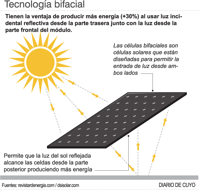 Los tres parques solares que ya tiene en operación Genneia por 82 MW cuentan con 273 mil paneles solares. Para el parque Sierras de Ullum, de 80MW, se colocarán sólo 150 mil paneles, porque son más avanzados tecnológicamente: serán bifaciales, y tomarán la energía solar directa y la que se refleja desde el suelo. Además contarán con mayor capacidad de generación: un 6% más que un panel normal.