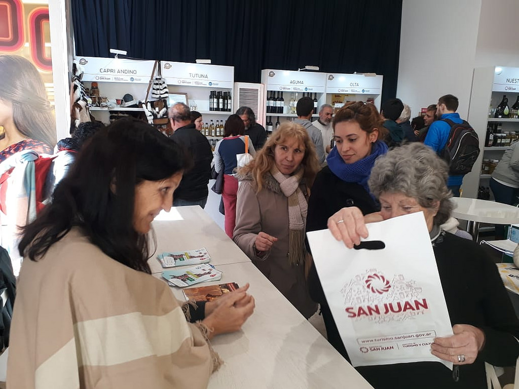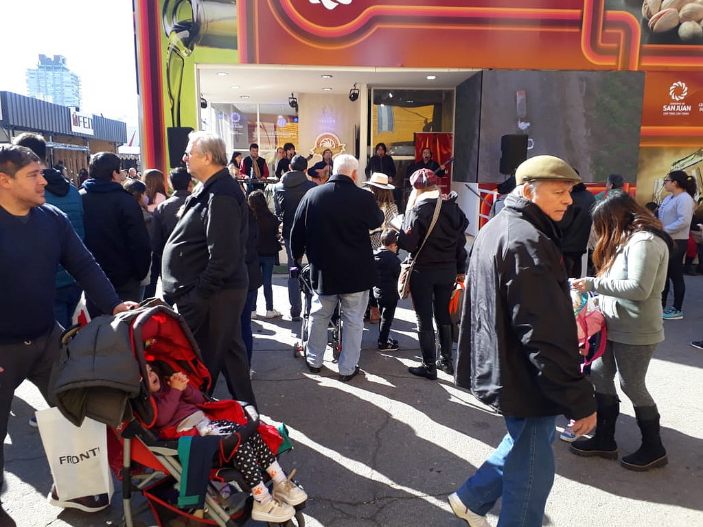 Del mismo modo, cuentan que el stand de San Juan está ubicado al ingreso del predio y cuenta con un diseño muy atractivo, con espacio para la exposición y venta, un sector para reuniones donde también se desarrollan las catas y degustaciones de los diferentes productos, y un área para grupos musicales que hacen más llamativo el pabellón sanjuanino. Allí, varios artistas locales han ofrecido su repertorio a los visitantes invitando a conocer la provincia.