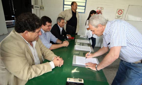 El presidente de la Corporación Vitivinícola Argentina, José Molina, presidió ayer la firma del contrato del grupo asociativo de pequeños productores al frigorífico de uva Expofrut, en el marco del proyecto de Intregación de Pequeños Productores a la Cadena Vitivinícola. El proyecto es financiado por el BID y está dando los primeros pasos en San Juan.