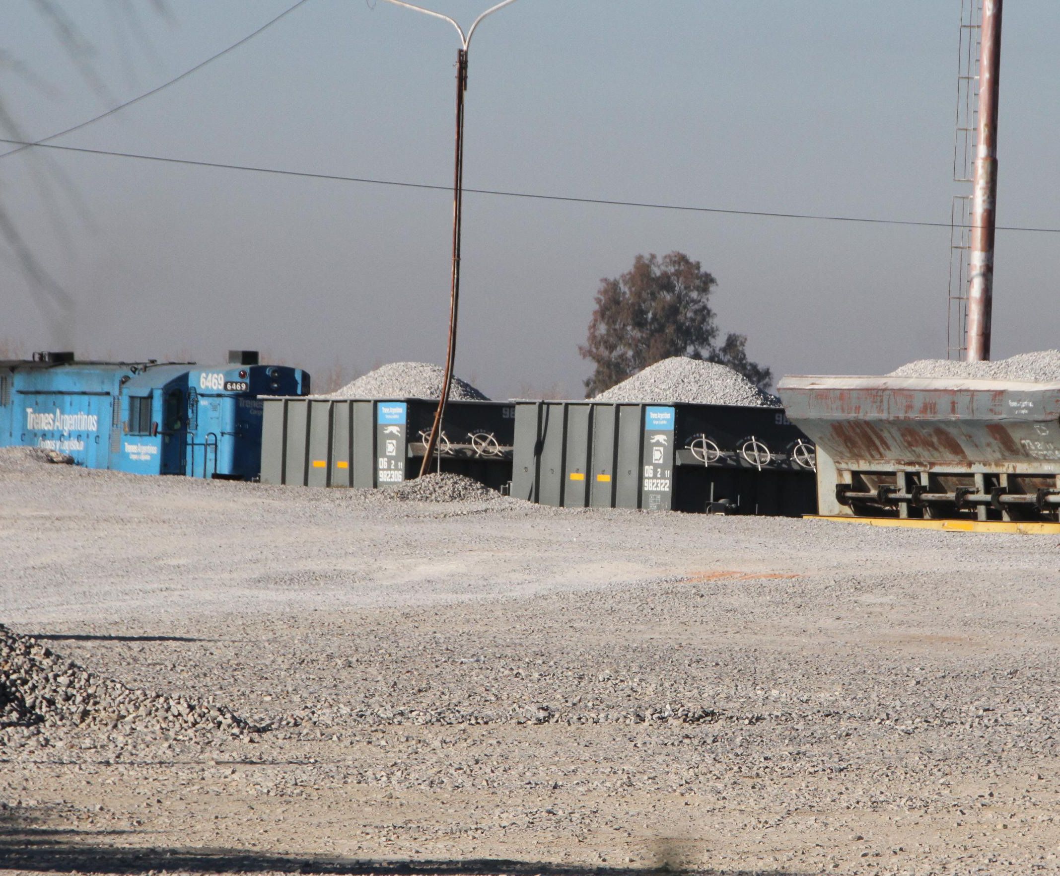 Y para allí parten formaciones casi todos los días con la piedra que se carga en las estaciones de Cañada Honda y Retamito, en Sarmiento, y en Albardón.