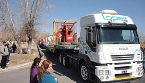 Es todo un acontecimiento para San Juan cada vez que equipos de tal porte circulan por las rutas camino a las comunas mineras. La petrolera nacional Oil M&S transportó (ya lo había hecho antes) equipos hacia la comuna norteña de Jáchal, donde este mes planea perforar el primer pozo de exploración que, a pedido del gobernador Gioja, se llama Bicentenario.