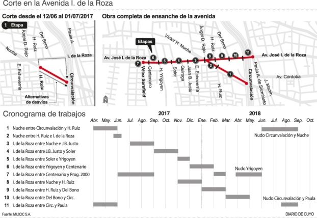 Desde las 8 de hoy, empezaron las obras para el ensanche de la Avenida José Ignacio De la Roza. El primer tramo que se ve afectado es el que va desde la intersección de la calle lateral de Circunvalación y Nuche hasta Hermógenes Ruiz. El corte en la circulación vehicular se prolongará durante 20 días, según el plan ideado por la empresa constructora Milicic, por lo que los ciudadanos deberán circular durante todo ese lapso por vías alternativas.