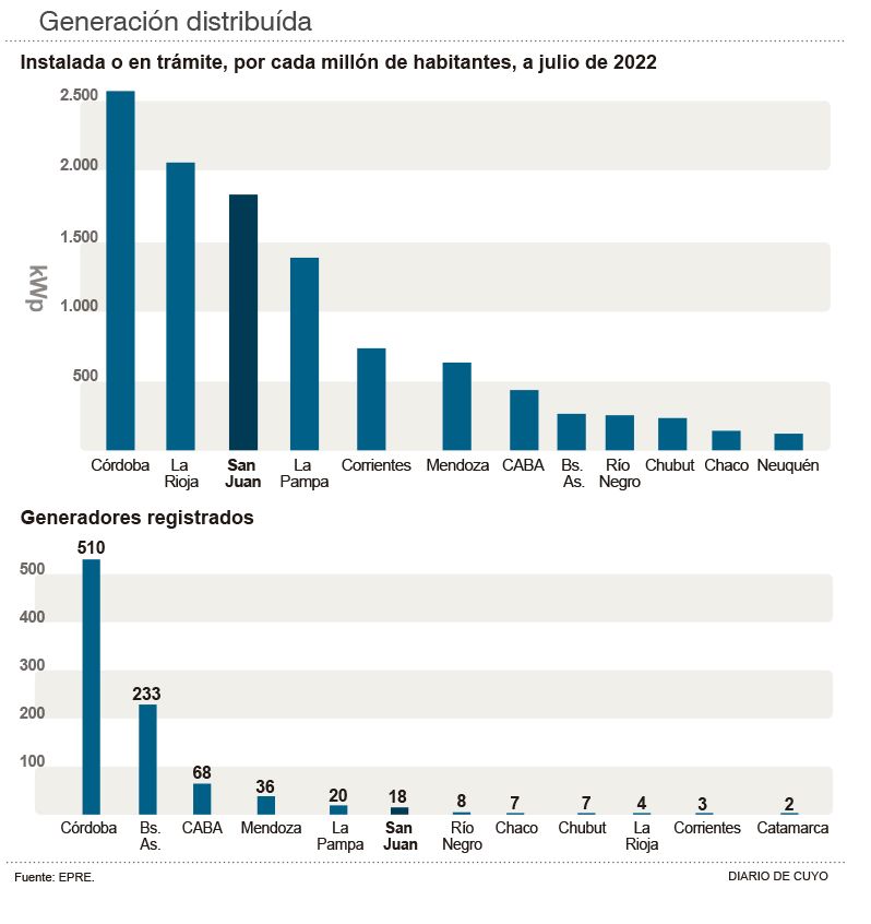 Entre las cuestiones en análisis está un planteo de la Unión Industrial de San Juan, que menciona que una pyme no puede generar en un predio con una nomenclatura catastral distinta al lugar donde se consume esa energía. Otra cuestión que piden es que no se les cobre el VAD (valor agregado de distribución) al pequeño generador que quiere inyectar energía a la red. Y también que se elimine el requisito de informar la energía generada que se consumió.