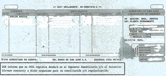 La Dirección General de Rentas decidió enfocarse en los empleados públicos y este mes implementó una medida que en San Juan no tiene antecedentes. En el recibo de sueldo de los que son deudores incluyó una leyenda para “avisarles” y recordarles que deben impuestos. El objetivo es que se pongan al día o que ingresen al régimen de pago de descuento automático que se creó para la administración pública, que hasta ahora ha registrado una adhesión casi nula. Según el titular del organismo, Adrián Villegas, en lo que va de junio “se acercaron muchos a consultar” cómo pueden hacer para regularizar la situación.