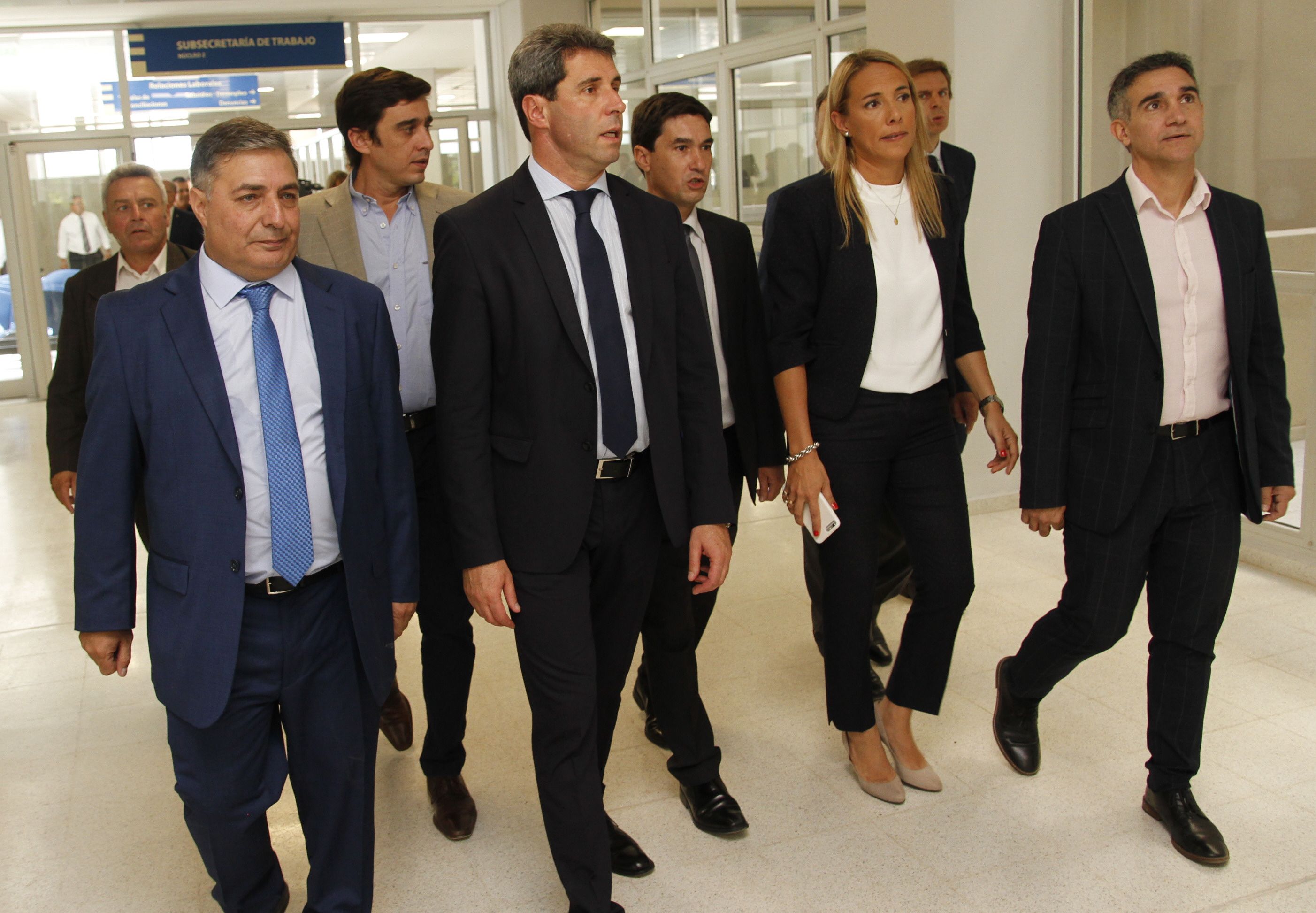 Visita. El gobernador Uñac recorrió el nuevo edificio junto a los funcionarios que tendrán las oficinas que empezarán a funcionar desde el próximo miércoles.