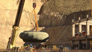 San Juan, 17 de julio.- La estructura llegó el sábado a la provincia y fue trasladada por ruta 40 donde llamó la atención de todo el que la vio por su magnitud. Desde el lunes operarios trabajaron para la instalación de esta pieza clave en la sala de máquinas del Dique Punta Negra, que ya cuenta con un avance de obra de un 52%.